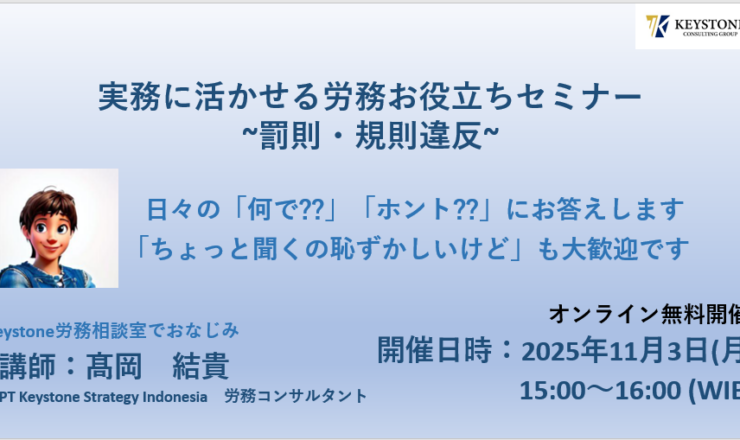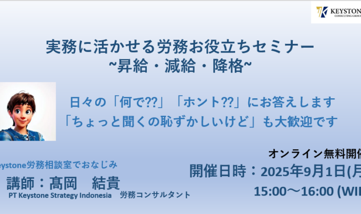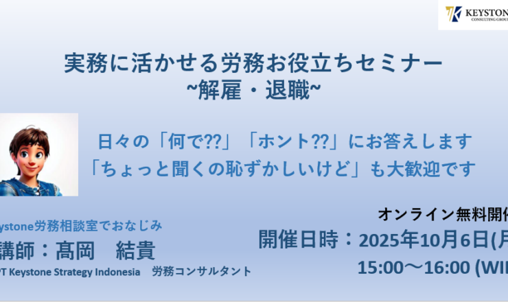 コストダウンが急務の企業において、退職金計算を視野に入れた賃金体系の見直しのご相談を受けることが出てきました。定年退職金が他国より多いと言われるインドネシアにおいて、できるだけ退職金計算に含まれない支給方法の工夫などを検討することは、退職金引当金なども含め、大きなインパクトがあります。