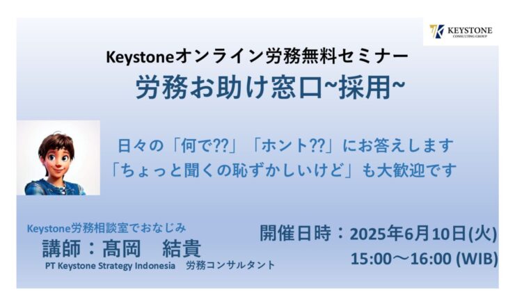Keystoneオンライン労務無料セミナー 労務お助け窓口 ~採用~